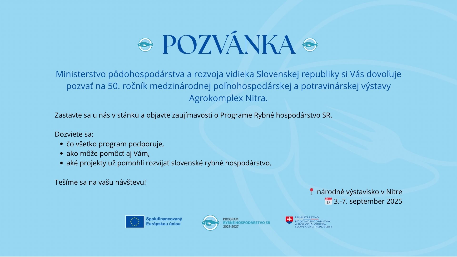 🔹 Zistíte, čo program podporuje, ako môže pomôcť aj vám a aké projekty už posunuli slovenské rybné hospodárstvo vpred.